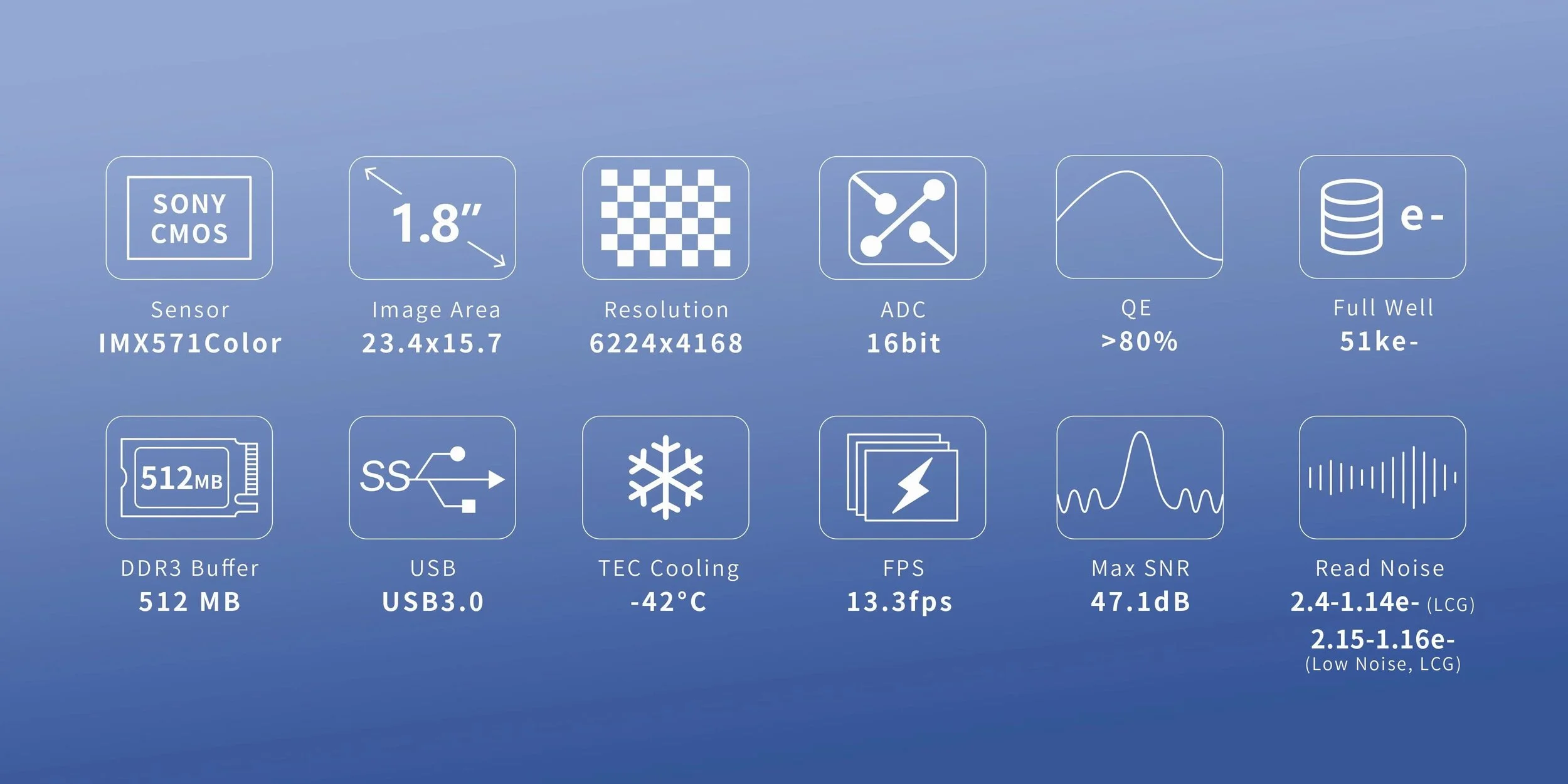 The camera also includes low noise and high full-well operating modes, giving users flexibility depending on their imaging target.